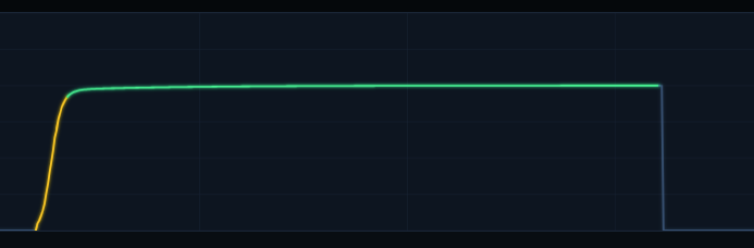 Pause — stops the simulation. Waveforms freeze. Useful when adjusting settings to observe the effect of a single change.