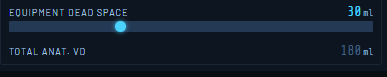 Dead space added by ventilator circuit components (HME filters, catheter mounts, angle pieces) in ml. Additive to the patient’s anatomical dead space. Total anatomical dead space (patient + equipment) is displayed below as a derived value.